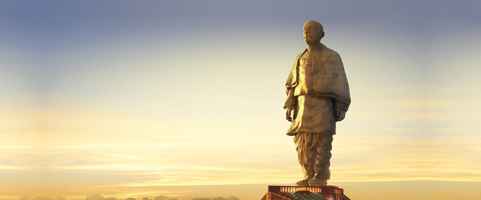 这座标志性的雕像矗立于印度古吉拉特邦讷尔默达河上的一座小岛。竣工后为全球最高雕像。雕像内设有电梯,可带观光客到顶端,透过帕特尔的双眼,俯瞰脚下全景。